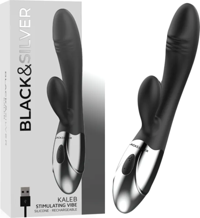 De Kaleb is een rabbitvibrator van BLACK&SILVER met twee superkrachtige motoren: één in de punt voor interne stimulatie en één in de rabbit voor clitoris. USB-oplaadbaar en afgewerkt in superzacht hypoallergeen siliconen. Geschikt voor wie stevige, gerichte stimulatie wil; niet geschikt als je absoluut stilte of volledige onderdompeling zoekt. Wordt geleverd met een proefflacon water-based glijmiddel.