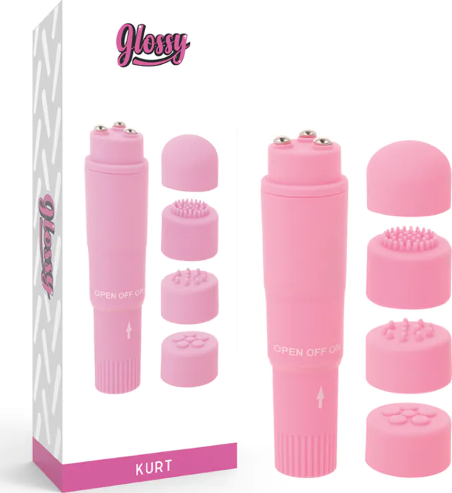 Mini vibrator GLOSSY Kurt met 4 verwisselbare koppen